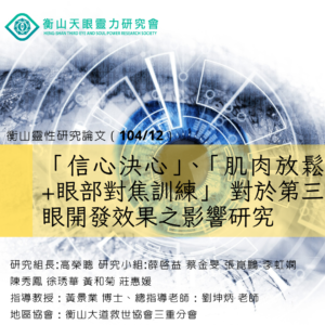 衡山論文:「信心決心」、「肌肉放鬆+眼部對焦訓練」 對於第三眼開發效果之影響研究(104/12)